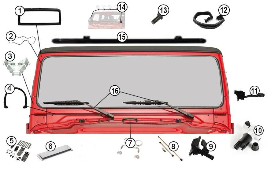 Diagram Windshield Parts Wrangler TJ