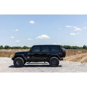 Put the finishing touch on your Jeep Wrangler JL with Rough Countrys 2.5-Inch Suspension Lift Kit. Crafted specifically for the 4-door model, this kit provides the clearance to easily run 35-inch tires, taking your JL to new heights with a bold, trail-ready stance.Level Up Your Ride: Eliminate the factory nose-dive and achieve a sleek, leveled look. This lift kit levels the front with the rear, giving your Jeep a rugged stance that can conquer any trail.Improved Off-Roading Performance: Gain the extra ground clearance needed to tackle tough terrain without worry. Optimized approach, breakover, and departure angles ensure your JL performs confidently on challenging trails.Ride Improvement: Linear coil rate springs enhance handling and load support, improving performance both on and off the trail.Custom Shock Options: Configure your lift with your choice of nitrogen-charged N3 shocks, V2, M1 Monotube, or premium M1R shocks to perfectly match your driving style, from comfortable daily driving to maximum off-road control.Additional Tire Clearance: This kit clears up to 35-inch tires, giving your Jeep a more aggressive, head-turning stance.Easy Bolt-On Installation: Designed for hassle-free installation, this 100% bolt-on lift gets you back on the trail faster without the need for complex modifications.