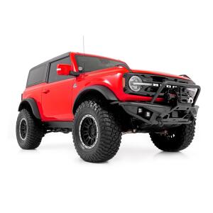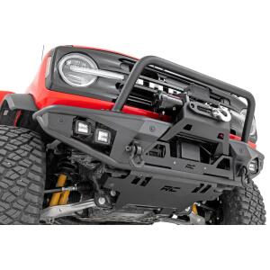 Get ready to unleash the beast within your Bronco with Rough Country’s Front Tubular Bumper! This new bumper is the game-changer your Bronco has been waiting for. It’s the key to transforming your Bronco into an off-road beast that’s ready to take on any challenge. Sleek & Bold Design: Elevate your Bronco’s style with 2-inch diameter tubing, coated in a Satin Black finish for a bold streamlined look.Trail-Ready Power: Our bumper includes a D-ring set boasting a massive 4.75-ton capacity for unbeatable trail-ready power.Off-Road Fortification: With an integrated skid plate and bolt-on stinger bar, tough terrain doesn’t stand a chance against this bumper.Reliable All-Weather Lighting: Each bumper includes (4) 2-inch Black-Series LED Cubes with an IP67 waterproof rating, providing trail-ready lighting that shines through the toughest conditions.With bold design, trail-ready power, off-road fortification, and reliable all-weather lighting, this bumper is the game-changer you’ve been searching for. Upgrade your Bronco today with Rough Country’s Front Tubular Bumper ‘because life is too short for boring stock bumpers!