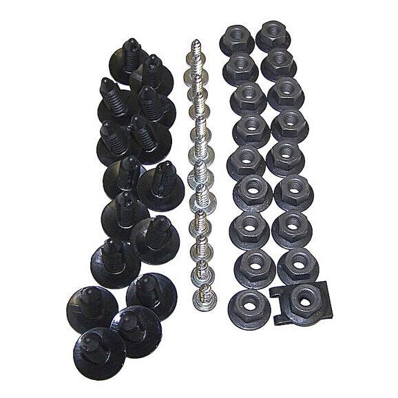 Includes 2 u-clip nuts, 14 push-in fasteners, 18 nuts, and 12 screws.;