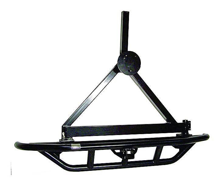 The Crown Automotive Rock Crawler Rear Bumper and Tire Carrier is a great upgrade for your Wrangler YJ or TJ. This two-piece bumper with swing out tire carrier mounts to the original locations on the Jeep and using the included hardware. Integrated 2″ receiver allows you to carry baskets and bike carriers, expanding your Jeep limited load capacity. Bumper is made from 1-3/4″ round steel tubing while the tire swing uses square tube for strength. Swing-out operates independently from factory tailgate and wheel mount pattern uses the original 5×4.5″.