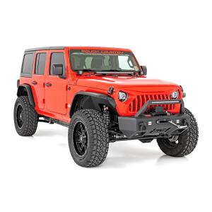 Innovative Design and Added Protection. Increase your Wrangler’s tire clearance and protective features while adding impressive good looks with Rough Country’s High Clearance Flat Fender Flares. These aggressively good-looking flares transform your JL’s exterior boasting 9-inches of front tire coverage and 4.5-inches of rear tire coverage these uniquely designed flares are sure to protect your Jeep’s body from mud or road debris kicked up by the tires.
