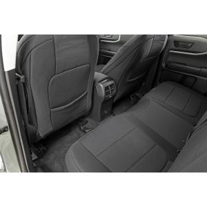 Want to protect your seats or are your seats showing signs of wear and tear from daily use? Say goodbye to unsightly stains and deterioration with Rough Country’s Neoprene Seat Covers – the ultimate solution for preserving your vehicle’s interior.Snug Fit for Optimal Protection: Our seat covers are tailored to fit your seats perfectly, providing a protective barrier against spills, scratches, and everyday wear and tear.Factory-Spec Construction: Engineered to meet factory specifications, our covers blend seamlessly with your vehicle’s interior, giving it a fresh, new look without compromising on quality or style.Four-Layer Defense: With a four-layer construction featuring foam padding and a durable polyester shell, our seat covers offer unmatched protection and longevity, ensuring your seats stay looking new for years to come.Breathable and Water-Resistant: The neoprene layer not only provides breathability for added comfort but also boasts water-resistant properties, safeguarding your seats from spills and stains.Complete Coverage: Our covers come with full protection for your front seats, including headrest covers where applicable, as well as rear covers to shield your back seats from children and pet-related mishaps.Peace of Mind Warranty: Rest easy knowing your purchase is backed by our two-year warranty, giving you confidence in the durability and reliability of our product.Don’t let worn-out seats diminish your driving experience. Upgrade to Neoprene Seat Covers today and enjoy a fresh, stylish interior that’s protected against the rigors of daily life on the road.
