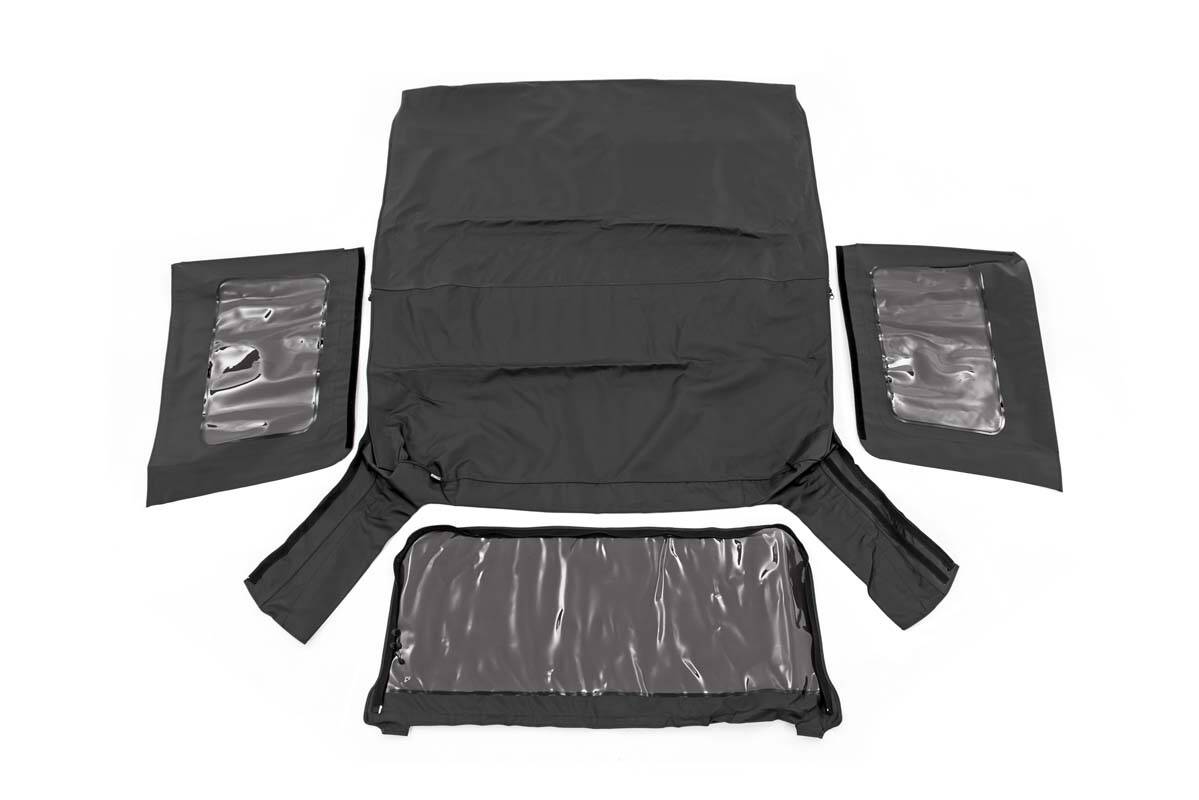 Upgrade Your Style. You love your Jeep Wrangler. And for good reason. It’s a vehicle that embodies freedom, adventure, and the off-road lifestyle. But sometimes, you want to create something different, something more exciting. With our weather-resistant soft top replacement, we’re making it easier than ever to customize your ride. Now you can upgrade your style while maintaining the rugged durability you depend on. Rough CountryΓÇÿs Soft Top Cover is custom-designed to replace your JK factory top with ease. It’s built to withstand even the harshest elements while providing lasting durability and unique styling.
