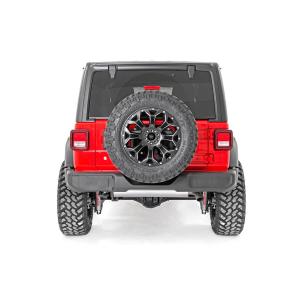 Gain enough clearance to run a 35×12.50 spare tire with Rough Country’s Jeep JL Spare Tire Carrier Relocation Bracket! In the factory position, the Jeep JL is unable to mount a 35in spare tire due to inadequate clearance over the factory bumper. This durable, easy-to-install mount relocates the factory spare tire assembly upwards by 2.25in, allowing you to easily clear a 35in aftermarket spare tire above your factory rear bumper.Rough Country’s JL Spare Tire Carrier Relocation Bracket succeeds where simpler solutions fail; engineered as a solid-steel, one-piece plate for the ultimate in durability and strength when it comes to holding the weight of your spare tire and wheel. This innovative design bolts directly into the factory mounting points and includes all the necessary components to relocate your entire spare tire assembly upwards with no need for drilling, welding, or additional modifications. Includes Rough Country’s Lifetime Replacement Guarantee!