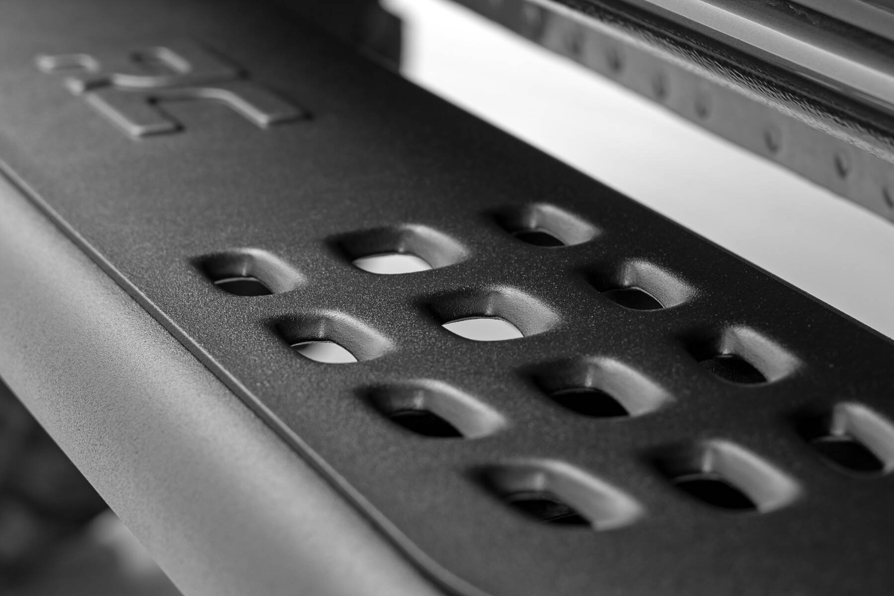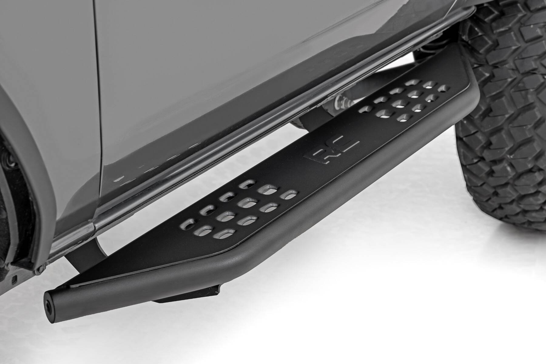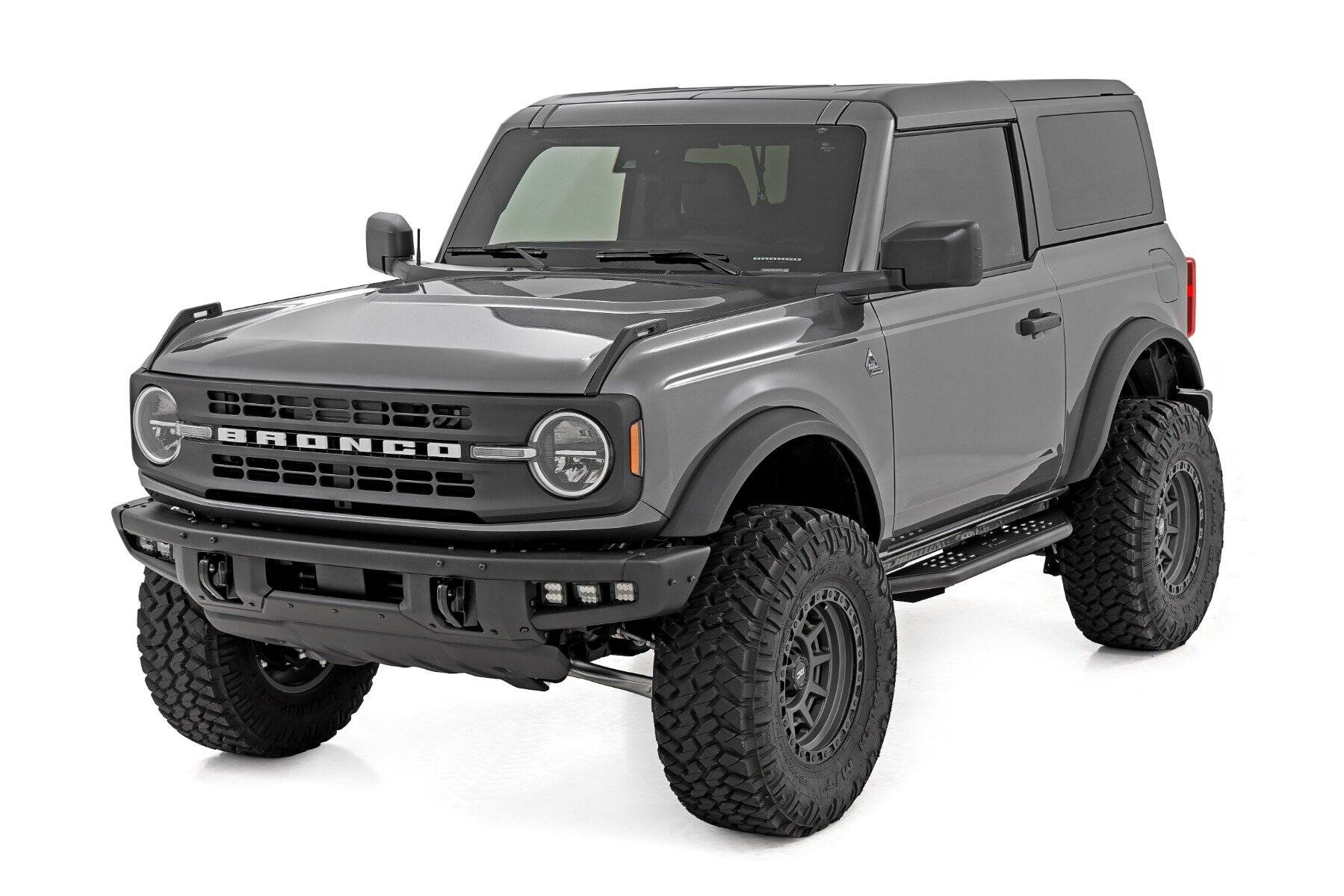 Rough Country’s OV2 running board is the perfect combination of off-road style and function. These heavy-duty steel steps feature a rugged tubular construction for strength and rocker panel protection while still boasting a large area for secure footing. With rugged construction and easy installation, it’s time to elevate your Bronco’s performance and style.Rugged Durability: Made from durable steel and wrapped with a tubular side wall, the OV2 Running Boards offer reliable protection against rocks and debris the trail throws your way. The 1 ┬╛ inch steel tubing provides added body protection, ensuring your Bronco stays in top condition no matter where you go.Ample Stepping Area: With a generous 6 3/4-inch-wide stepping area, these running boards offer plenty of foot room, making it easy to enter and exit your Bronco, even with mud-caked boots.Corrosion Resistance: Finished with a durable powder coat, our running boards are built to withstand the elements and resist corrosion, so they’ll look great for years to come.Easy Installation: Say goodbye to complicated installations. The OV2 Running Boards feature a no-drill installation process, allowing you to equip your Bronco for off-road adventures without the hassle.Peace of Mind: Rough Country stands behind the OV2 Running Boards with a limited lifetime warranty, so you can trust that our boards are a reliable investment for your Bronco.Whether you’re navigating rocky trails or cruising through mud and sand, these running boards are the ultimate off-road companion, providing a sure step and unmatched protection for your rig.ΓÇ»