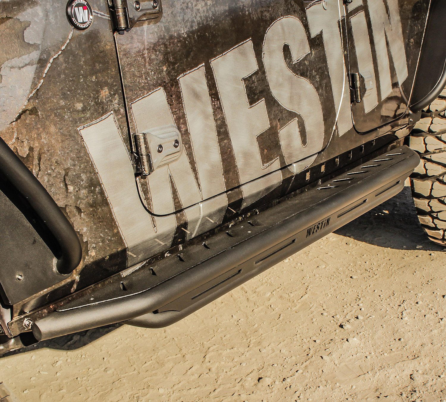 Rock Rails You finally got your Wrangler JL and now you want to take it off-road. First things first is do you have the right protection? The Triple Tube Rock Rails from Westin not only have you covered in the protection department but they also serve as a side step to help with getting in and out of your Jeep. These beefy side steps will add off-road protection and style to your Jeep while you take on the trails with peace of mind. Made from 2″ diameter .120″ thick wall tube or protection and a sturdy die formed 16 gauge steel step plate these side steps give you all you could want in protection and functionality.