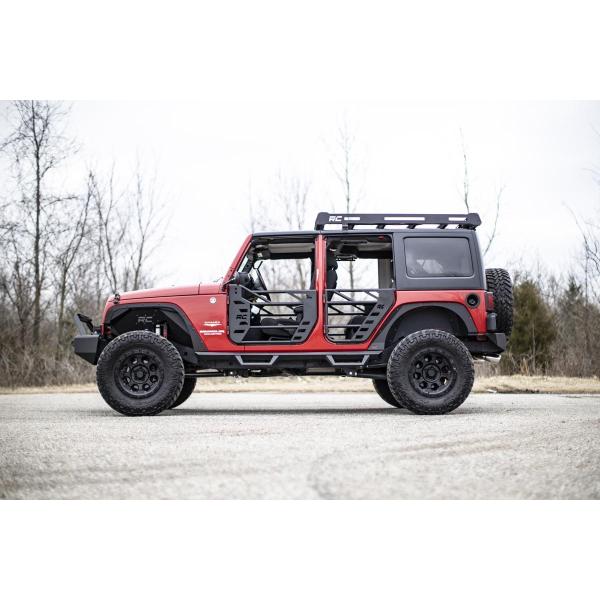 Put the wind in your hair and freedom at your fingertips with Rough Country’s Steel Tube Doors! These durable, steel doors give your vehicle an aggressive look while giving you increased visibility without sacrificing safety.There’s little in this world that can match the feeling of riding in a Jeep with nothing between you and the world around you! Rough Country’s easy-to-install tubular steel doors allow you to keep your occupants safe while enjoying the open air. These durable, 1.25in diameter tube steel doors with integrated latching system keep everyone contained and comfortable for the duration of the journey. Rough Country’s Tube Doors feature a high-quality, black powder coat that’s designed to resist corrosion for a long lifespan of good looks. The simple bolt-on installation process makes them easy to install, allowing for a total transformation of your Jeep in no-time flat! Each front tube door Includes a mounting point to attach the factory mirrors.